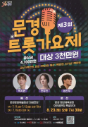 문경시는 오는 8월 23일 오후 7시 30분, 영강체육공원 야외공연장 특설무대에서 ‘제3회 문경트롯가요제’ 본선을 성대하게 개최한다고 밝혔다...