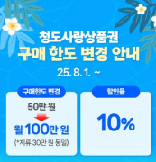 청도군, 청도사랑상품권 월 구매한도 100만원으로 상향