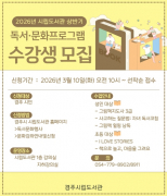경주시립도서관은 시민들의 독서문화 확산과 평생학습 기회 확대를 위해 `2026년 상반기 독서문화프로그램`을 운영하고 수강생을 모집한다. 이번..