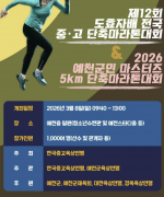 예천군은 오는 8일 오전 10시부터 예천읍 일원에서 `제12회 예천 도효자배 전국 중·고 단축마라톤대회` 및 `2026 예천군민 마스터즈 단축..