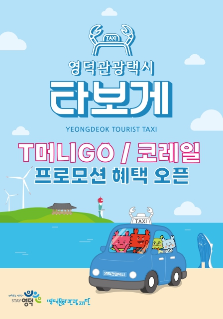 (재)영덕문화관광재단이 한국관광공사, 한국철도공사(코레일)와 함께 영덕관광택시 활성화를 위한 프로모션을 펼친다. 이번 할인 프로모션을 통해 영덕을 찾는 방문객들은 보다 편리하고 저렴한 이동 수단인 영덕관광택시 `타보게`를 활용해 교통비 부담 없이 영덕의 자연과 먹거리를 만끽할 수 있게 된다. 구체적인 혜택은 두 가지로 나뉜다. 먼저 ▲한국관광공사 X 대중교통 통합예매시스템 T머니GO 관광택시 출시기념 50% 할인 이벤트 ▲코레일 X 영덕관광택시 연계 할인 혜택이다. 먼저 한국관광공사는 7월 22일부터 대중교통 통합예매시스템인 티머니GO 앱에 관광택시 서비스를 출시하고 그 기념으로 ‘관광택시 50% 할인 이벤트’를 진행한다. 이용 방법도 간단하다. 티머니GO 앱 우측 상단 쿠폰 아이콘 클릭 ‘관광택시 오픈 기념 50% 쿠폰’다운로드 ・결제 시 해당 쿠폰 선택 ・할인 적용을 받으면 된다. 영덕관광택시의 경우, 이용 금액의 60%를 지원하는 기존 혜택에다 티머니GO 앱으로 영덕관광택시를 예약, 결제하면 추가 50% 할인이 적용되는 방식이다. 즉 영덕관광택시 지원금에다 추가 50% 할인가로 영덕의 주요 관광지를 편안하게 둘러볼 수 있는 절호의 기회인 셈이다. 한편, 한국철도공사(코레일)도 영덕을 찾는 승객들을 위한 맞춤형 할인 이벤트를 시작했다. 7월 21일부터 예산 소진 시까지 진행되는 본 이벤트는 기존 영덕관광택시 지원금 60% 혜택에 더해 열차표 50%를 할인해주는 파격적인 내용이다. 영덕군 내 모든 기차역(장사, 강구, 영덕, 영해, 고래불)에 도착하는 열차표를 소지한 승객이라면 누구나 할인 혜택을 받을 수 있는데 단, 이 상품은 하루 3팀 한정으로 선착순 지원되기 때문에 영덕을 방문하고자 하는 관광객들은 서둘러 신청해야 한다. 사용방법은 코레일 홈페이지 또는 레츠코레일 어플의‘지역사랑여행’메뉴 ▲‘경상권’클릭 ▲지역별 여행 [지역사랑-영덕군] 영덕관광택시 선택 ▲원하는 기차시간 및 영덕관광택시 이용 시간 체크 ▲결제 순이다. 이번 코레일 연계 할인 이벤트를 통해 영덕관광택시를 이용하는 방문객은 대중교통이 없어 이용하기 어려운 지역의 숨은 명소까지 접근할 수 있어서 만족도가 커질 것으로 예상된다. 영덕문화관광재단 관계자는 “이번 코레일과 한국관광공사의 관광택시 프로모션을 통해 관광객들의 교통비 부담이 줄어 영덕 여행의 문턱도 대폭 낮아졌다고 본다.”며 “영덕을 찾아 아름다운 자연과 풍부한 먹거리를 즐기려는 분이라면 이 두 가지 파격적인 프로모션을 놓치지 말길 바란다.”고 강조했다. 관광택시 프로모션에 대한 자세한 내용은 영덕문화관재단과 영덕관광택시 타보게 홈페이지 에서 확인할 수 있다.