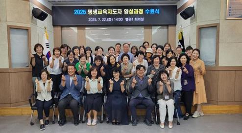경산시는 22일 시청 별관 회의실에서 `2025년 평생교육지도자 양성과정 기초반` 수료식을 열고, 수강생 35명에게 수료증을 수여했다.이번 과정은 지난 4월 1일 개강해 총 15회차, 50시간에 걸쳐 진행됐으며, ▶마을평생교육지도자의 이해 ▶역할과 동기부여 ▶부산 사상구 덕포동 한내마을 견학 등 이론과 실습을 병행한 교육으로 구성됐다.수강생들은 교육을 통해 평생교육지도자로서의 전문지식과 현장 이해도를 높였으며, 평균 94%에 달하는 높은 수료율을 기록해 지역사회를 위한 참여 의지를 드러냈다.윤희란 부시장은 이날 축사를 통해 “무더운 날씨 속에서도 끝까지 열정을 보여준 수강생 여러분께 감사드린다”며 “이번 수료는 끝이 아닌 시작이며, 지역사회와 함께 성장하는 지도자로의 출발점이 될 것”이라고 말했다. 이어 “여러분의 손길이 더해질 때 마을은 더 풍요로운 배움의 공간으로 발전할 수 있으며, 이는 곧 경산시의 미래 성장으로 이어질 것”이라고 밝혔다.