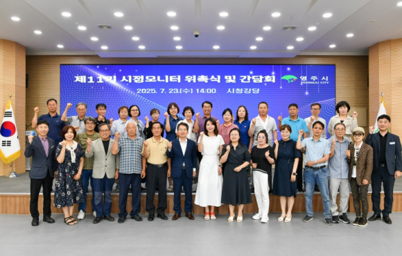영주시민들의 생생한 목소리를 시정에 전달할 제11기 시정모니터가 본격적인 활동에 들어간다.영주시는 7월 23일 오후 2시, 시청 강당에서 제11기 시정모니터 위촉식 및 간담회를 열고 앞으로 시정에 참여할 시정모니터들과 소통의 시간을 가졌다.시정모니터는 생활 속 불편사항이나 시정 전반에 대한 의견을 직접 시에 전달하는 시민 참여 제도로, 시민 눈높이에서 행정을 살피고 개선 방향을 제안하는 역할을 맡는다.이날 위촉된 제11기 시정모니터는 지난 6월 초 공개모집(16명)과 읍면동 추천(33명)을 통해 총 49명(남 26명, 여 23명)으로 구성됐다. 이들은 앞으로 2년간 활동하며, 현장 모니터링과 시민 제보를 통해 시정에 실질적인 의견을 전달하고 시정 발전에 기여할 계획이다.또한 시는 시정모니터의 제보 사항을 관계 부서에 신속히 전달하고, 처리 결과를 건의자에게 안내하는 피드백 체계를 통해 시민과 적극적으로 소통하며 다양한 의견을 시정에 반영할 방침이다.이날 간담회에 참석한 유정근 영주시장 권한대행은 “시정모니터는 행정이 미처 파악하지 못하는 시민의 생생한 목소리를 전달하는 중요한 역할을 맡고 있다”며, “시민들의 불편과 건의사항이 시정에 잘 반영될 수 있도록 제11기 시정모니터가 적극적이고 활발하게 활동해 주길 바란다”고 말했다.