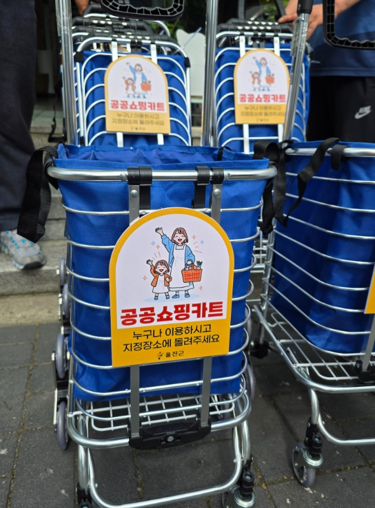 울진군은 전통시장 이용객들의 편의 증진과 시장 활성화를 위해 지난 7월 17일부터 울진바지게시장에 공공카트 대여 시범사업을 운영하고 있다. 이 사업은 전통시장에서 장보기 중 물품을 들고 다니기 어려움이 있는 고령자 등 고객들에게 접이식 카트를 대여해 주는 것으로, 전통시장 이용률을 향상시키고 시장활성화를 제고하고자 마련됐으며, 울진바지게시장에 시범적으로 10대의 공공카트를 배치하여 운영 중이다. 군은 입구가 여러 곳인 울진바지게시장 환경을 고려하여 5개의 거점 점포(남부떡집, 시장떡집, 청조떡집, 옷깁는마을, 큰바다수산)에 카트를 배치하여 군민들의 접근성과 편의성을 높였다. 각 카트에는 도난이나 분실을 막기 위해 울진군 공공 쇼핑카트 인식표를 부착했다. 이용 방법은 대여 대장에 간단한 고객 정보를 작성한 후 빌리고, 장보기를 마친 후 거점 점포로 반납하면 된다. 손병복 울진군수는“이번 공공카트 대여사업을 통해 울진바지게시장을 찾는 이용객들의 불편이 해소되고 시장 활성화에도 도움이 되기를 바란다”며“앞으로도 군민의 목소리를 듣고 군민의 편의를 증진할 수 있는 사업들을 발굴해 나가겠다”라고 전했다.