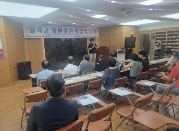 칠곡군은 지난 23일 왜관신협 2층 대강당에서 왜관역 1번도로 일원 상권에 진행중인‘왜관 중앙상권 자율상권구역 지정’을 위한 사업 설명회’를 개최했다. 생업에 종사하는 상인들의 편의를 위해 오후 3시와 8시, 2회에 걸쳐 진행한 이날 설명회는 왜관 중앙상권 상인과 임대인 등 50여명이 참석한 가운데, 지역상권법 소개, 자율상권 구역 지정 개요, 상권활성화를 위한 의견수렴 순으로 진행됐다. 자율상권 구역으로 지정되면 상인과 임대인이 상생 협약으로 정한 수준에서의 임대료 안정화, 온누리상품권 가맹 혜택, 상권 활성화 사업 신청 등이 가능하다. 군 관계자는 “경기침체, 온라인 유통 등으로 쇠퇴하는 지역 상권 회복을 위해 진행하는 자율상권 구역 지정 추진은 상인, 임대인, 토지주가 모인 준비위원회 구성이 자율상권 조합 설립에 필수적이며, 상인과 주민의견 수렴을 위한 사업설명회, 공청회 등을 지속해서 진행할 계획으로 지역 소상공인과 주민들의 적극적인 관심과 참여를 부탁드린다”고 전했다.