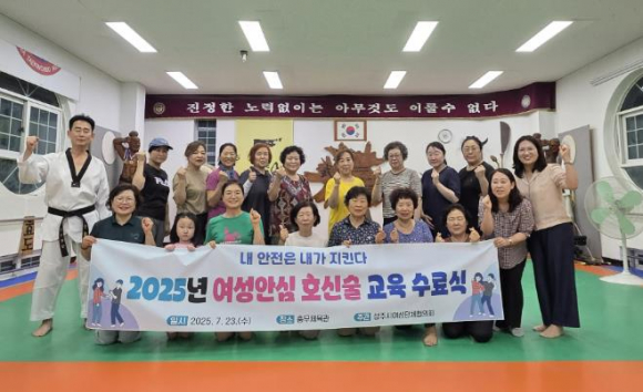 상주시여성단체협의회는 23일 관내 태권도장에서 지역 여성을 대상으로‘2025 여성안심 호신술 교육’수료식을 가졌다.이번 교육은 4월 21일부터 7월 23일까지 지역 여성 40여 명을 대상으로 39회에 걸쳐 실시됐다.2017년부터 9년째 추진해 오고 있는‘여성안심 호신술 교육’은 전문 강사 지도하에 이론교육을 바탕으로 자기방어기술 등 실습교육에 중점을 두고 진행하여 폭력에 취약한 여성들이 위급한 상황 발생 시 스스로 대처능력을 높이는 것에 목표를 두고 무료로 운영됐으며 야간 운영으로 이용자들이 좀 더 쉽게 참여할 수 있도록 했다.상주시여성단체협의회 김연희 회장은“이번 교육을 계기로 여성들이 위험 상황에서 두려움을 떨쳐내고 자신감을 갖고 대처하는 능력을 키우는데 도움이 됐으면 좋겠다”라고 말했으며 강영석 상주시장은“여성안심 호신술 교육을 통해 상주가 건강하고 안전한 도시로 성장하는데 보탬이 되기를 기원하며, 앞으로도 여성들의 역량강화를 위하여 상주시에서 적극 지원하겠다”고 말했다.
