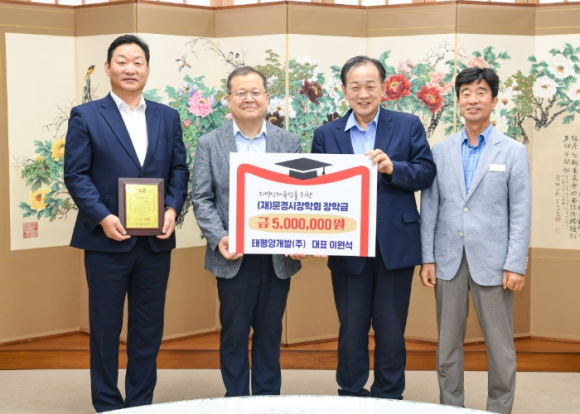 (재)문경시장학회에 미래 인재육성을 위한 장학금 기탁 행렬이 이어져 지역사회에 큰 힘이 되고 있다. 지난 24일 문경시여성단체협의회(회장 김미자)에서 문경시장학회에 장학금 300만 원을 전달했다. 문경시여성단체협의회는 지역의 19개 여성단체가 모여 여성의 권익신장을 위해 설립되어, 지역사회 발전과 주민 삶의 질 향상을 위해 활동하는 단체이다. 지금까지 문경시여성단체협의회는 문경시장학회에 총 2,000만 원의 장학금을 기탁했다. 같은 날 함께 후원에 동참한 태평양개발㈜(대표 이원석)에서도 지역학생들을 위해 장학금 500만 원을 기탁했다. 용인에 소재한 태평양개발㈜는 택지조성, 도로공사 등 토목, 건축 전문 공사업체로 문경에서 사업하는 동안 지역에 받은 도움을 베풀고자 이번 문경시장학회에 처음으로 후원했다. 신현국 이사장은 “지역 각계각층의 많은 분들께서 매해 저희 장학회를 잊지 않고 꾸준히 관심을 가져 주고 계심에 이사장으로서 무거운 책임감을 다시 느끼고, 다양한 장학사업을 추진하여 많은 기대와 관심에 부응할 수 있도록 노력하겠다.”며 감사의 뜻을 표했다.