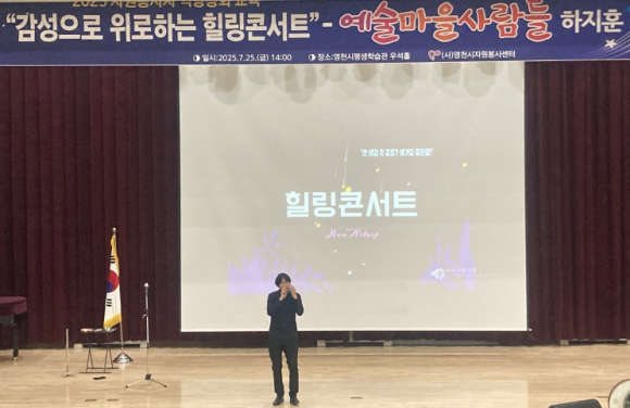 영천시자원봉사센터는 25일 평생학습관 우석홀에서 자원봉사자 300여 명이 참석한 가운데, ‘2025년 자원봉사자 역량강화 교육’을 성황리에 개최했다.이번 교육은 자원봉사자들의 역량을 강화하고 봉사활동에 대한 동기를 부여하기 위해 마련됐다. 특히, ‘감성으로 위로하는 힐링 콘서트’라는 주제로 진행된 특별강연은 큰 호응을 얻었다.강연을 맡은 하지훈 강사(예술마을사람들 운영감독)는 오카리나와 플루트를 활용한 감미로운 연주로 지친 자원봉사자들의 심신을 위로하며 깊은 감동을 전했다.강연에 참석한 한 자원봉사자는 “지친 일상 속에서 따뜻한 음악이 함께한 오늘의 콘서트는 몸과 마음에 큰 위로가 되는 시간이었다”며, “앞으로도 더욱 따뜻한 마음으로 봉사에 임하겠다”고 소감을 밝혔다.최기문 영천시장은 “자원봉사자 여러분의 따뜻한 나눔이 영천을 더욱 살기 좋은 도시로 만들어가고 있다”며, “영천시에서도 여러분의 헌신에 보답할 수 있도록 적극 지원하겠다”고 말했다.한편, 영천시자원봉사센터는 매년 자원봉사자를 대상으로 역량강화 교육과 다양한 인문학 강연을 진행하고 있으며, 자원봉사자들의 만족도와 지역사회 복지 수준 향상을 위해 지속적인 프로그램을 운영해 나갈 계획이다.