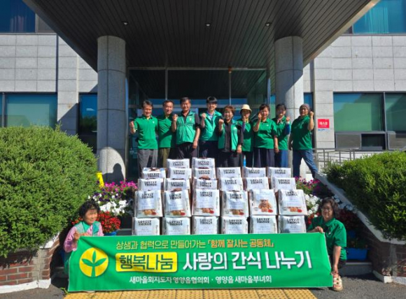 영양읍 새마을지도자협의회, 새마을부녀회 회원 20여명은 7월 25일 관내 소외되고 어려운 이웃에게 사랑의 간식 나누기 행사를 가졌다. 영양읍 새마을지도자협의회 및 새마을부녀회 회원들은 홀몸노인 및 거동이 불편한 관내 소외계층 40가구를 방문하여 간식꾸러미를 전달하면서 서로의 안부를 확인하며 이웃들의 건강한 여름나기를 응원하는 시간을 가졌다. 김동환 새마을지도자협의회장과 권낙향 새마을부녀회장은“무더위에 지친 이웃들에게 보탬이 되고자 정성껏 꾸러미를 쌌다. 간식을 드시고 힘을 내셨으면 좋겠다.”라고 말했다. 김초한 영양읍장은“무더위 속에서도 이웃들을 위해 나눔 봉사를 준비한 새마을회 회원분들의 노고에 감사드린다. 이웃분들이 무더운 여름을 잘 날 수 있도록 최선을 다하겠다.”라고 말했다.한편, 영양읍 새마을회는 사랑의 김장 담그기, 희망나눔을 위한 헌옷 수거행사, 환경실천을 위한 새마을 줍깅데이 등 관내 행사와 봉사활동에 꾸준히 참여하여 지역 사회의 큰 힘이 되고 있다