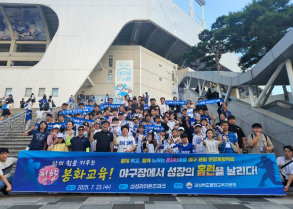 경상북도봉화교육지원청은 2025년 7월 23일 대구 삼성라이온즈파크에서 2025 봉화 교육발전특구 사업의 일환으로 관내 초·중학생과 학부모, 교육지원청 직원 등 170여 명이 함께하는 `온(溫)마을 야구 관람 현장체험학습`을 실시했다. 이번 현장체험학습은 학생들에게 지역 내에서 경험하기 어려운 프로야구 관람과 야구장 문화 체험의 기회를 제공하고, 학부모와 교직원이 함께 참여하여 지역 교육공동체가 하나 되는 화합의 장을 마련하고자 기획됐다. 특히, 면지역 학생들의 접근성을 높이기 위해 버스를 지원하여 모든 학생이 함께할 수 있는 포용적 체험의 의미를 더했다. 이날 경기에서는 삼성 라이온즈가 SSG 랜더스를 상대로 9:0의 완승을 거두었다. 참석한 봉화의 학생과 학부모들은 열정적인 응원을 보내며 경기장을 뜨겁게 달궜고, 이들의 응원이 승리의 원동력이 됐다. 이번 행사에 참여한 봉화초 6학년 김○○ 학생은 “TV로만 보던 야구장을 직접 가보니 정말 신기하고 재미있었어요. 삼성 선수가 안타를 쳐서 점수를 내었을 때 모두가 일어나서 환호했던 순간이 잊히지 않아요. 함께 온 부모님, 선생님, 친구들과도 더 가까워진 것 같아서 기뻤어요.”라고 소감을 전했다. 또한 함께한 학부모 홍○○ 씨는 “아이와 함께 특별한 추억을 만들 수 있어 감사했습니다. 스포츠 체험을 통해 아이가 더 활기차고 자신감 있는 모습으로 돌아왔어요. 교육지원청에서 이런 자리를 마련해 주셔서 매우 뜻깊었습니다.”라고 말했다. 이영록 봉화교육지원청 교육장은 ˝앞으로도 교육발전특구 사업을 통해 지역의 한계를 넘는 다양한 문화·예술·체육 체험 기회를 제공하고, 학교와 가정, 지역이 함께 성장하는 온(溫)마을 교육공동체 실현을 위해 노력하겠다˝고 밝혔다. 봉화교육지원청은 이번 야구 관람 체험을 계기로, 학생들의 진로 탐색과 감성적 성장을 도울 수 있는 현장 중심의 프로그램을 다양화하여, 교육공동체가 함께 만들어가는 미래지향적 지역 교육 모델을 구현하고자 한다.