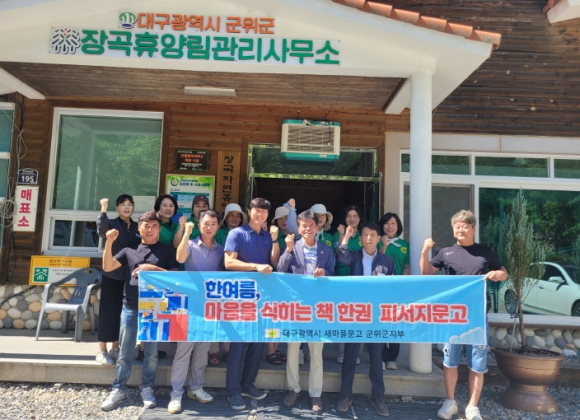 군위군새마을회문고군지부 장기석 회장은 본격적인 여름 휴가철을 맞아 군민과 관광객이 많이 찾는 피서지에‘여름 피서지 문고’를 운영하며 독서 문화 확산에 앞장서고 있다.이번 피서지 문고는 7월 28일부터 8월 8일까지 운영되며, 군위군 관내 장곡휴양림에서 도서 100여 권을 비치하고, 자유롭게 책을 읽을 수 있는 공간을 제공하고 있다. 특히 어린이부터 어른신까지 다양한 연령층을 위한 도서를 구비하여 가족 단위 피서객의 큰 호응을 얻고 있다. 군지부는 이번 운영을 통해 “무더운 여름, 책과 함께하는 피서 문화를 조성하고, 군민의 독서 습관 형성화 정서 함양에 기여하고자 한다”고 밝혔다. 또한 현장을 찾은 피서객에게는 독서퀴즈, 삼행시 글짓기대회, 한글자음 팔찌만들기 체험부스 운영 등 이벤트도 함께 진행해 책 읽는 즐거움을 더하고 있다.군위군새마을문고군지부는 매년 여름 피서지 문고를 운영하며 독서문화 진흥에 기여하고 있으며, 앞으로도 생활 속 독서 환경 조성을 위해 다양한 프로그램을 지속적으로 펼쳐나갈 계획이다.