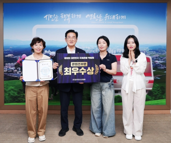 영천시가 지난 18일부터 21일까지 개최된 ‘제10회 대한민국 국제 관광박람회’에서 콘텐츠 부문 최우수상을 수상했다. 대한민국 국제 관광박람회는 최신 관광산업 동향과 트렌드를 공유하는 업계 최대 규모의 행사로, 전국 지자체, 해외관광청, 여행사 등 총 450여 개 부스가 참여했다. 영천시는 이 가운데 관광자원의 우수성과 홍보 역량을 십분 발휘해, 관광 산업의 국제적 경쟁력을 인정받았다.영천시는 참신한 방식으로 부스를 운영했다. 중독성 있는 ‘보현산별빛축제’ 로고송과 함께 홍보 패널 영상을 송출해 방문객들의 관심을 집중시켰으며, 영천 9경을 소재로 인스타그램 팔로우 및 룰렛 이벤트를 진행해 부스 방문객 수를 극대화했다.시 관계자는 “이번 박람회를 통해 영천시가 대한민국 관광 산업 발전에 크게 기여하는 도시임을 알릴 수 있었다”고 소감을 전하며, “국제적으로 ‘별 볼일 많은 낭만 도시 영천’을 브랜딩하기 위해 마케팅 활동에 적극 나설 예정”이라고 덧붙였다.