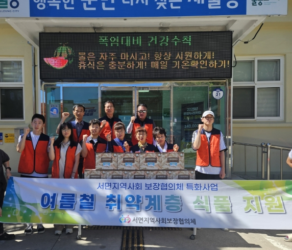 울릉군 서면 지역사회보장협의체(공공위원장 김준철, 민간위원장 이정태)는 2025년 7월 28일 중복을 대비하여 특화사업인‘여름철 취약계층 식품 지원’사업을 실시했다. ‘여름철 취약계층 식품 지원’사업은 서면 지역사회보장협의체 여름철 특화사업으로 취약계층 80 가구에게 무더위를 대비해 식품세트를 제공함으로써 여름철 건강 약화를 예방하고 생계 부담을 경감하고자하는 사업이다.삼계탕과 곰탕 세트를 준비해 관내 취약계층 가구에 직접 전달하여 안부를 묻고 건강을 살폈다.서면 독거 어르신 한 분은 무더운 날씨에도 직접 집에 방문해 음식도 갖다주고 안부도 살펴줘 항상 감사하다는 마음을 전했다.이영숙 부위원장은 “작은 마음이지만 무더위에 지친 취약계층 가구에게 도움이 되길 바라며 준비했다. 이번 나눔으로 취약계층이 건강하게 여름을 보내는데 도움이 되기를 바란다”라며 “앞으로 도움이 필요한 이웃들에게 힘이 될 수 있는 서면 지역사회보장협의체가 되도록 하겠다”라고 말했다.공동위원장인 김준철 서면장은 “더운 날씨에도 나눔과 봉사에 참석해주신 지역사회보장협의체 위원님들께 감사드리며 앞으로도 민·관이 협력해 취약계층이 건강하고 안전한 여름을 보낼 수 있도록 지속적으로 살피고 지원해 나가겠다”라고 말했다.