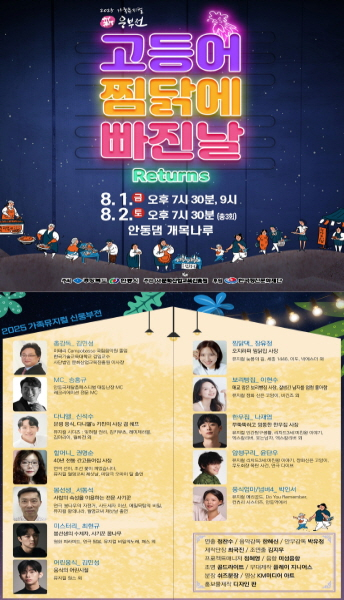 문화산업교육진흥원이 주최․주관하는 창작뮤지컬 ‘신웅부전 – 고등어 찜닭에 빠진 날’이 오는 8월 1일과 2일, 이틀간 안동댐 개목나루 특설무대에서 관객들과 다시 만난다.올해 공연은 부제 ‘Returns’에 걸맞게 더욱 탄탄해진 스토리와 출연진의 성숙한 연기로 기대를 모으고 있다. ‘신웅부전’은 안동을 대표하는 간고등어와 찜닭을 소재로 한 유쾌하고 감동적인 가족형 창작뮤지컬로, 지역 전통 먹거리와 관광자원을 문화 콘텐츠로 재해석한 독창적인 시도로 주목받고 있다.2011년 안동문화예술의전당에서 첫선을 보인 이후, ‘신웅부전’은 월영교를 거쳐 올해는 개목나루로 무대를 옮겨 새로운 시도와 변화를 이어가고 있다. 10년이 넘는 창작의 역사와 노하우를 바탕으로, 이제는 시민과 관광객 모두가 함께 즐기는 대표 공연 콘텐츠로 자리매김했다.이번 공연은 ‘월영야행’과 연계된 대표 프로그램으로, 여름밤의 시작을 알리는 메인 콘텐츠로 구성돼 환상적인 야경과 함께 감동을 선사할 예정이다.공연은 8월 1일 오후 7시 30분과 9시, 8월 2일 오후 7시 30분 총 3회에 걸쳐 진행된다. 입장료는 5,000원이지만, 지역화폐 연계 페이백 제도를 통해 전액 지역상품권으로 환급받을 수 있어 실질적 무료 관람이 가능하다. 총감독 김민성 대표는 “지역 예술인들의 역량을 모아 준비한 이번 작품은 안동 고유의 문화와 정체성을 담은 지역형 콘텐츠의 대표 모델”이라며 “깊어가는 여름밤, 재미와 감동을 함께 전할 수 있는 무대가 되길 바란다”고 전했다.