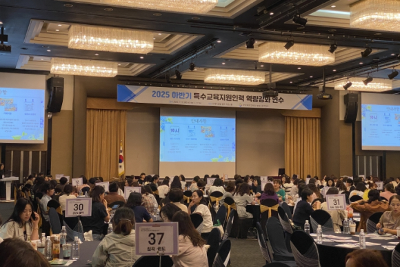 경북교육청은 31일 경주시에 있는 더케이호텔경주에서 도내 특수교육실무사 307명과 특수학교 생활지도원 18명 등 총 325명을 대상으로 ‘2025년 하반기 특수교육지원인력 역량 강화 연수’를 실시했다. 이번 연수는 특수교육 대상 학생을 보다 전문적이고 효과적으로 지원하기 위한 실천 중심형 프로그램과 인문학적 소양을 아우르는 내용으로 구성됐다. 연수에서는 김미진 교사가 ‘특수교육대상학생 지원을 위한 실천 전략과 협력 방안’을 주제로 특수교육 지원의 구체적 사례를 공유했고, 공감N소통 성교육연구소 조아라 소장은 ‘성인지 감수성으로 소통하기’를 통해 현장 소통 역량을 높이는 법을 안내했다. 또한, ㈜굿인사이트 이준오 대표는 ‘마음과 마음을 이어주는 클래식 인문학’ 강의를 통해 감성 회복의 시간을 제공했다. 경북교육청은 이번 연수를 통해 특수교육지원인력이 업무에 필요한 실천 역량을 강화하고, 인문학적 소양을 통해 자아를 돌보며 소명 의식을 고취할 기회가 될 것으로 기대하고 있다. 임종식 교육감은 “현장에서 묵묵히 헌신하며 특수교육대상학생을 지원하는 여러분의 노고에 깊이 감사드린다”라며, “이번 연수가 업무에 필요한 역량을 기르고 스스로를 돌보는 소중한 시간이 되기를 바란다. 앞으로도 특수교육지원인력에 대한 지속적인 관심과 지원을 아끼지 않겠다”라고 말했다.