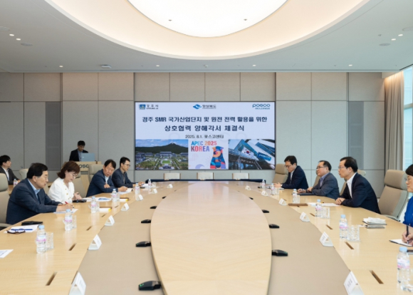 경주시는 8월 1일 서울 포스코센터 회의실에서 경북도, 포스코홀딩스와 소형모듈원전(SMR) 1호기 경주 유치와 원전전력의 활용 협력을 위한 업무협약을 체결했다. 이번 협약은 제11차 전력수급기본계획에 포함된 정부의 소형모듈원전(SMR) 국내 실증 1호기의 경주 유치와 인근 경주 SMR 국가산업단지의 성공적 조성을 위해 상호 협력하고, 철강 탄소중립 기술인 수소환원제철 실현을 위한 원전전력 활용방안을 찾기 위해 마련됐다. 3개 기관은 이번 협약을 통해 △ 소형모듈원전(SMR) 국내실증 1호기 경주 유치, △ 경주 SMR 국가산업단지 투자, △ 수소환원제철 실현을 위한 원전 전력의 공급방안 마련 등 향후 긴밀히 협력하기로 했다. 최근 경북도와 경주시는 대형원전에 비해 안전성이 대폭 강화되고 소형으로 산업계 수요가 높은 소형모듈원전(SMR)을 중심으로 원자력 산업활성화를 위해 노력 중이며, 첨단산업 집적을 위한 경주 SMR 국가산업단지 조성, 제작지원센터 구축 및 소형모듈원자로 연구기관인 문무대왕과학연구소 설립 등 산업육성을 위해 적극적으로 나서고 있다. 특히, 소형모듈원전(SMR) 국내 실증 1호기의 경주 유치와 원전 전력을 활용한 경주 SMR 국가산업단지의 성공적 조성에 총력을 기울이고 있어, 산업의 수요와 공급 측면에서 국내 최대 전력, 수소 활용기업인 포스코홀딩스와의 업무협약 체결은 큰 의의가 있다고 하겠다. 경북 포항에 본사를 둔 세계 7위의 조강생산능력을 보유한 글로벌 철강기업인 포스코는 우리나라 산업근대화에 중추적 역할을 담당해 왔으나, 최근 미국의 철강관세 강화, 유럽연합(EU)의 탄소관세 장벽 등 국제적 어려움에 직면해 있으며, 그 해결책으로 원전 전력을 활용한 수소환원제철 중심의 탄소감축 공정으로의 전환을 위해 노력 중이다. 수소환원제철은 철광석에 붙은 산소를 떼어내기 위한 환원제로 기존 사용하던 석탄이나 천연가스 대신 수소를 활용하여 전기로에서 쇳물을 제조하는 기술로서 철강 생산과정에 배출되는 탄소를 혁신적으로 줄일 수 있는 탄소감축 기술이다. 이 기술을 이용하려면 철을 녹이기 위한 1,538도(℃)의 무탄소 내지는 저탄소 열에너지 공급이 필수적인데, 가장 큰 문제는 바로 비용이다.수소환원제철의 성공을 위해서는 안정적이고 값싼 무탄소 전원을 24시간 확보하는게 핵심인데 이를 가능케 하는 에너지원은 현재로선 원전밖에 대안이 없는 실정이다. 철강·에너지 업계 관계자들은 유럽연합, 일본 등 주요국들은 철강산업의 탈탄소 전환을 위해 이미 적극적인 지원정책을 펼치고 있으며, 특히, 수소환원제철을 위해선 막대한 전력이 필요하고, 이는 간헐성이 있는 재생에너지만으로는 충족이 불가능하여 전력구매계약(PPA)를 통해 민간이 원전 전력을 활용할 수 있도록 정부의 적극적인 제도 개선이 필요하다고 입을 모으고 있다. 이날 협약식에 참석한 경주시 주낙영 경주시장은 “철강산업의 탈탄소 전환은 피할 수 없는 운명이며, 수소환원제철을 위한 안정적인 대용량 전기 공급원은 SMR을 비롯한 원전이 가장 현실적인 대안으로 평가된다”라며, “세계 철강시장을 주도하는 포스코와 첨단 에너지 산업 중심지인 경주가 일심협력한다면 『SMR 1호기』 경주유치에 한발 다가갈 수 있고, 포스코도 값싸고 안정적인 대용량 전기를 공급받을 수 있는 가능성이 커지기 때문에 향후 기업과 자치단체의 동반성장이 기대된다”고 말했다.