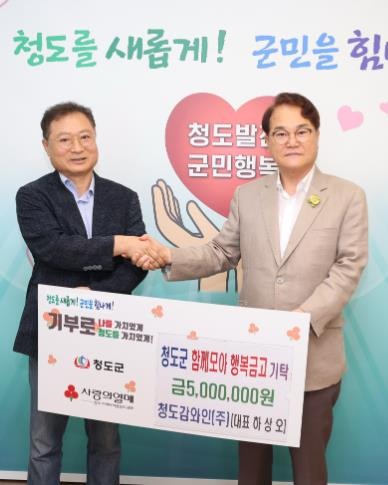 청도군은 8월 1일 주식회사 청도감와인으로부터 지역사회복지 향상을 위해 운용 중인‘함께모아 행복금고’에 500만원의 기탁금을 기탁받았다고 전했다. 청도감와인은 지역 특산물인 감을 활용한 와인과 생막걸리로 널리 알려진 기업으로 평소 꾸준한 기탁으로 지역사회와의 상생과 이웃사랑 실천에 앞장서는 모습을 보여주고 있다. 청도감와인(주) 하상오 대표는 “청도에서 자리를 잡고 성장해온 기업으로서 지역사회에 보답하는 것은 당연한 책임이라고 생각하며, 지역의 소외된 계층을 위해 알차게 쓰여지길 바란다”고 말했다. 김하수 청도군수는 “지역의 경제를 이끄는 기업들의 나눔과 배려에 깊이 감사드리며, 기탁해 주신 정성은 선한 영향력으로 우리 청도에 활력과 화합을 가져다 줄 것을 확신한다”고 전했다. 기탁금은 지역사회보장협의체를 통해 취약계층과 복지사각지대에 놓인 주민들을 위해 사용될 계획이며,‘함께모아 행복금고’는 지역사회 중심의 자원개발과 및 복지사각지대 문제 해소 등을 위해 지역사회보장협의체와 함께하는 연합모금사업으로 저소득층의 긴급한 위기상황을 해결하고 지역사회 문제 해소를 위한 특화사업을 지원하는 사업이다.