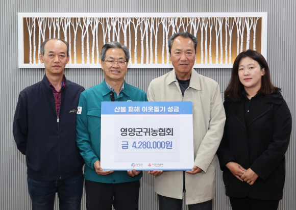 영양군귀농협회는 최근 발생한 산불로 인해 피해를 입은 영양군 주민들을 위한 성금 428만원을 전달했다.이번 성금은 산불 피해로 어려움을 겪고 있는 주민들에게 조금이나마 도움이 됐으면 하는 마음으로 영양군 귀농협회 회원들이 한마음 한뜻으로 정성을 모아 마련한 것으로 알려졌다. 최봉석 영양군 귀농협회장은 “산불 피해 주민들께 깊은 위로의 말씀을 전한다”며, “하루빨리 아픔을 극복하고 일상을 회복하시길 바란다”라고 밝혔다.오도창 영양군수는 “성금을 전달해 주신 영양군 귀농협회 회원들의 따뜻한 마음에 깊은 감사를 드린다”고 고마움을 전했으며, “영양군은 이재민들이 하루빨리 일상으로 복귀할 수 있도록 지원과 복구에 최선을 다하겠다”라고 말했다.한편, 영양군 귀농협회는 영양군 귀농인들의 모임으로 현재 127명의 회원으로 구성되어 있으며, 이들은 영양군으로 귀농하는 분들이 안정적으로 정착할 수 있도록 귀농에 대한 정보를 공유하고 실질적인 도움을 주기 위해 활동하고 있는 단체이다.