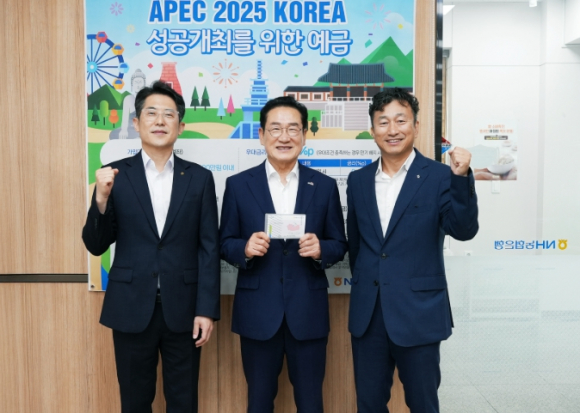 영천시는 5일, 최기문 시장이 APEC 정상회의의 성공적인 개최를 염원하며 NH농협은행이 출시한 ‘APEC 2025 KOREA 성공개최를 위한 예금’에 가입했다고 밝혔다.이번 예금 상품은 3,000억원 한도 내에서 10월 31일까지 한시적으로 판매되며, NH농협은행 경북본부는 예금액의 0.1%(최대 3,000만원)와 기부금(최대 7,000만원)을 더해 최대 1억원 이내에서 지역사회 공헌을 위한 공익기금으로 전달할 예정이다.이날 NH농협은행 영천시청 출장소를 방문해 직접 예금에 가입한 최기문 시장은 “2025 APEC 정상회의의 성공적인 개최를 위해, 영천시도 함께 응원의 뜻을 전하고자 예금 가입에 동참했다”며, “영천시민들은 물론 전 국민들의 관심과 응원이 확산되길 기원한다”고 말했다.김강훈 NH농협은행 영천시지부장은 “경북도민의 한사람으로서 자부심을 느끼며, APEC 특별예금에 대한 영천시민들의 많은 관심을 부탁드린다”고 말했다.