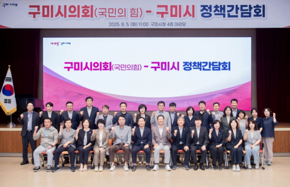 구미시가 지역 발전을 좌우할 핵심 현안의 해법을 모색하기 위해 정치권과 머리를 맞댔다.시는 8월 5일 시청 대강당에서 국민의힘 소속 구미시의원들과 정책간담회를 열고, 주요 시정 현안의 추진 방향과 협력 전략을 심도 있게 논의했다. 간담회에는 김장호 구미시장과 박교상 구미시의회 의장을 비롯해 시의원, 부시장, 실·국장 등 간부공무원이 참석했다.구미시는 간담회에서 △구미문화선도산단 조성 △장천 일반산단 조성 △대한민국 역사박물관 건립 △3대 축제 활성화 △낭만 힐링도시 인프라 구축 등 주요 역점사업을 설명하고, 시의회의 적극적인 협조를 요청했다. 이어 읍면동 권역별로 추진 중인 주민숙원사업이 조속히 진행될 수 있도록 시민 공감대 형성과 시의회의 지원을 당부했다.또한 새정부 국정과제로 추진 중인 △구미경제자유구역 지정 △국가 푸드테크 클러스터 기반 조성 △대구경북선(서대구~의성) 내 동구미역 신설에 대한 논의도 이뤄졌다. 시는 해당 사업들이 지역 미래 성장동력으로 자리잡을 수 있도록 시의회와 긴밀히 협력하기로 뜻을 모았다.김장호 구미시장은 “구미의 미래를 좌우할 핵심사업들이 조속히 실행돼 가시적인 성과로 이어질 수 있도록 시의회의 지속적인 관심과 협력을 부탁드린다”고 강조했다.이에 박교상 구미시의회 의장은 “오늘 논의된 현안에 대해 시의회도 정책 파트너로서 책임감을 갖고 적극 협력하겠다”며 “시정 전반에 걸쳐 지속적인 소통을 이어가겠다”고 밝혔다.한편 구미시는 이번 간담회를 시작으로 국회의원, 도의원, 시의원 등 지역 정치권과의 정책 협력 체계를 강화하기 위한 간담회를 지속적으로 추진할 계획이다.