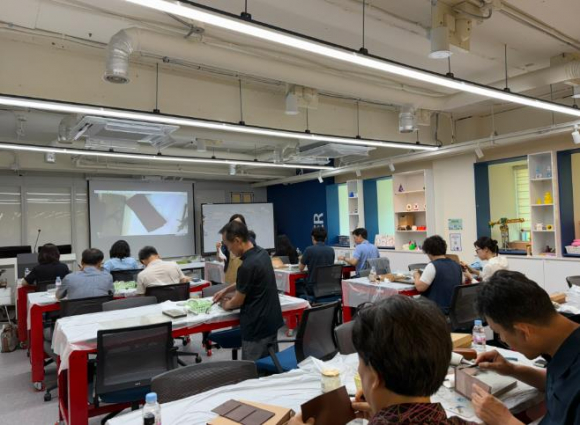 경상북도교육청 남부메이커교육센터는 8월 4일부터 8월 6일까지 관리자 메이커 맛보기 원데이 클래스를 운영했다. 경상북도 남부권역 관내 관리자 약 120명을 대상으로 한 이번 메이커 프로그램은 ‘가죽공예, 목공’의 2개 과정이며 날짜별로 5시간으로 나누어 다양한 프로그램을 체험할 수 있는 기회를 제공하려 했다. 가죽공예 강좌는 소가죽으로 만든 3단 가죽지갑 만들기, 목공 강좌는 호두나무 합목을 이용한 원형 사이드 테이블 만들기 활동을 했다. 목공 강좌에 참여한 교장선생님은 ‘평소 접하지 못하던 새로운 활동을 할 수 있어 좋은 경험이었고, 본교 학생들도 다음에는 메이커 프로그램에 참여할 수 있도록 독려해야겠다.’라는 소감을 밝혔다. 경상북도교육청 남부메이커교육센터의 박혜옥 센터장(교육지원과장)은 아직 남부메이커교육센터 교육에 참여하지 못한 학교가 많아 관리자들이 먼저 메이커 교육을 접해보고 학생들의 참여를 독려했으면 하는 마음으로 진행됐다. 앞으로도 경북형 메이커교육의 기반을 마련하기 위한 교원 연수 강좌를 지속적으로 개설할 예정임을 밝혔다.