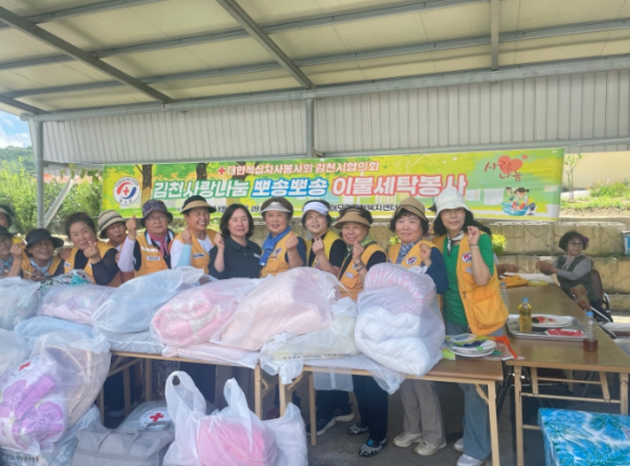 김천시 적십자봉사회는 지난 5일 어모면 행정복지센터에서 회원 30여 명이 참여한 가운데 어모면 독거노인과 취약계층을 위해 이불 세탁 봉사를 진행했다. 이번 활동은 무더운 여름을 맞이해 독거 어르신과 장애인 가구 등, 이불을 직접 세탁하기 어려운 취약계층을 지원하기 위해 마련됐다. 회원들은 적십자 이동 세탁 차량을 이용하여 이불 30채를 세탁·탈수하고, 햇볕에 건조하여 각 세대에 전달했다. 김미수 어모면 적십자 봉사회 회장은 ˝무거운 이불 빨래를 하기 어려운 어르신들에게 깨끗하게 세탁된 이불을 전달해 드릴 때 적십자 회원으로서 보람을 느낀다.”라며, “어르신들이 깨끗한 환경에서 건강하게 지내시길 바라고, 앞으로도 도움이 필요한 이웃들을 위해 다양한 봉사활동을 해나가겠다.”라고 전했다. 윤숙이 어모면장은 ˝더운 날씨에도 불구하고 이웃을 위해 봉사활동을 펼쳐 주신 적십자 봉사회원들의 노고에 감사드린다.”라며, “적십자 봉사회 등 우리 지역 봉사단체의 활동을 적극적으로 지원할 수 있도록 노력하겠다.”라고 말했다.