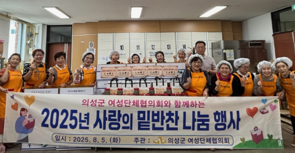 의성군은 의성군여성단체협의회(회장 한숙년)가 지난 8월 5일, ‘사랑의 밑반찬 나눔’ 행사를 통해 대형 산불 피해를 겪은 지역 주민과 취약계층에게 따뜻한 정을 전했다고 밝혔다. 이번 행사는 대형 산불로 어려움을 겪은 이웃들의 일상 회복과 생활 안정을 지원하고, 복지 사각지대에 놓인 어르신과 소외 계층에게 정서적 위로를 전하고자 마련됐다. 이날 여성단체협의회 회원 13명은 당일 구입한 신선한 재료를 활용해 직접 밑반찬을 조리했으며, 완성된 밑반찬 500세트를 독거노인, 장애인, 한부모 가정 등 지역 내 취약계층에 전달하며 무더운 여름철 건강한 식사를 응원하고 이웃 간 따뜻한 정을 나누는 시간을 가졌다.한숙년 의성군여성단체협의회 회장은 “작은 정성이지만 이웃들에게 따뜻한 위로와 힘이 됐기를 바란다”며 “앞으로도 지역사회를 위한 다양한 나눔 활동을 꾸준히 이어가겠다”고 밝혔다.김주수 의성군수는 “더운 날씨에도 어려운 이웃을 위해 기꺼이 나눔에 나서 주신 여성단체협의회 회원들께 감사드린다”며, “군에서도 모든 군민이 건강하고 시원한 여름을 보낼 수 있도록 지속적으로 노력하겠다”고 밝혔다.