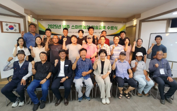 영주시농업기술센터는 지난 5일 농업체험교육관에서 ‘2025년 스마트농업 기술교육 수료식’을 열고 총 23명의 교육생에게 수료증을 수여했다고 밝혔다.이번 수료식은 지난 6월 17일부터 총 8회에 걸쳐 진행된 스마트농업 기술교육의 마무리 행사로, 교육생 및 관계자 등 29명이 참석해 자리를 함께했다. 전체 24명의 교육생 중 23명이 과정을 성공적으로 이수했다.교육 과정은 △스마트팜 기초이론 △온실 구조와 환경관리 △작물 생육관리 △스마트팜 제어장비 실습 △관내외 선진농업 현장 견학 등으로 구성됐으며, 실습과 현장 중심의 커리큘럼을 통해 참여자들의 이해도를 높였다. 마지막 교육일에는 경국대학교 신종화 교수가 ‘스마트팜의 미래와 온실관리’를 주제로 특강을 진행해 큰 호응을 얻었다.이날 수료증을 대표로 수여받은 안정면 이규성 교육생(68세)은 “이번 교육을 통해 스마트팜에 대해 많은 것을 배웠고, 실제로 올해 스마트온실을 지을 계획이기에 큰 도움이 됐다”며 소감을 전했다.영주시농업기술센터 관계자는 “스마트농업은 미래 농업의 핵심 성장 동력”이라며 “이번 교육이 농업인의 기술 경쟁력 향상은 물론 지역 농업의 디지털 전환 기반 마련에 기여하길 바란다”고 밝혔다.한편, 영주시는 앞으로도 지속적인 스마트농업 기술보급과 현장 중심의 전문교육을 통해 농업인의 소득 향상과 지속가능한 농업 실현에 앞장설 계획이다. 스마트농업과 관련 문의는 영주시농업기술센터 기술지원과 기술개발팀으로 하면 된다.
