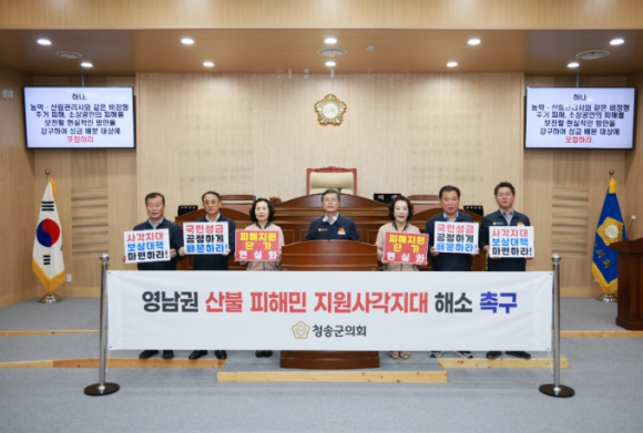 청송군의회는 7일 ‘영남권 산불피해 지원사각지대 해소를 촉구하는 결의문’을 발표했다. 지난 3월 발생한 초대형 산불로 청송군은 지역 전반에 큰 경제적·사회적 피해를 입었다. 국회에서는 산불피해 복구 지원을 위한 특별법 제정을 준비하고 있지만, 특별법 제정 전까지는 정부의 산불 피해 복구계획에 따라 피해 지원이 이루어질 수 밖에 없으며, 이는 산불피해에 대한 현실적인 보상 및 지원이 되지 못하고 있는 것이 현실이다. 더구나 실질적인 피해를 당하고도 정부의 보상 기준에 포함되지 못하는 지원 사각지대 피해민들도 상당수 존재한다. 이에 청송군의회는 산불피해 지원 사각지대 해소와 실질적인 피해 보상을 위한 결의문을 통해, 산불 피해 복구를 위해 모금된 성금 배분과 관련하여, 농업·축산·임업분야의 피해 지원 단가 현실화를 위해 성금배분을 우선 시행하고, 농막·산림관리사와 같은 비정형 주거 피해와 소상공인의 피해 등을 보전할 현실적인 방안을 강구하여 성금 배분 대상에 포함할 것을 촉구했다. 또한, 행정안전부 산하 성금배분위원회에 국민 성금 배분에 관한 집행기준과 절차를 투명하게 공개하고 피해민의 의견을 충실히 반영할 것을 촉구했다. 청송군의회는 촉구 결의문을 행정안전부 등 정부 관계 부처에 전달할 예정이며, 앞으로도 성금의 신속한 집행과 산불피해의 지원 사각지대 해소를 위해 지역 대표 의결기관으로서의 책임과 역할을 다하겠다고 강조했다.