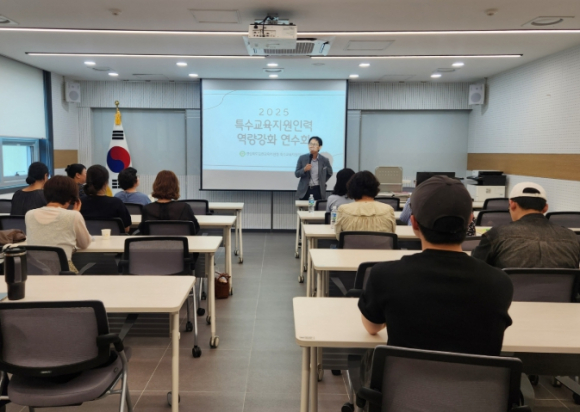 김천교육지원청은 2025년 8월 4일 관내 특수교육실무사 및 사회복무요원을 대상으로 `2025년 특수교육 지원인력 역량강화 연수`를 개최했다. 김천교육지원청에서는 특수교육실무사 및 사회복무요원을 대상으로 연수를 운영하며, 이들의 업무 능력 향상 뿐만 아니라 상호 간의 소통과 현장 경험을 공유할 수 있는 자리를 함께 마련하고 있다. 이번 연수는 특수교육대상학생의 교육활동을 지원하는 특수교육지원인력의 전문성과 책임감을 높이고, 현장에서의 실무 적용력을 향상시키기 이해 마련했다. 연수 대상은 관내 각급학교에 배치된 특수교육실무사와 28명, 사회복무요원 8명이며, 이들을 대상으로 심리적 회복을 위한 내 마음챙김 방법, 특수교육대상학생의 도전행동 대처방안 및 성인권교육 등을 중심으로 한 실질적인 연수가 진행됐다. 연수에 참석한 김 모 사회복무요원은 “이번 연수를 통해 특수교육에 대한 이해는 물론, 도전행동을 보이는 학생들을 어떻게 대처해야 하는지에 대한 실제적인 방법을 배울 수 있었다. 또, 성인권 교육과 심리적 회복을 위한 내 마음 챙김 활동을 통해 저 자신을 돌아보는 시간도 됐고, 장애학생을 지원하는 일이 얼마나 중요한지 다시금 느꼈다. 내가 맡은 역할에 대한 책임감과 보람이 더 커진 것 같다.”라고 말했다. 문대동 교육지원과장(김천특수교육지원센터장)은 “이번 연수가 사회복무요원과 특수교육실무사 모두에게 장애학생 지원에 대한 인식을 높이는 좋은 기회가 됐기를 바란다. 앞으로도 꾸준한 교육과 연수를 통해 이들이 장애학생 활동을 효과적으로 지원할 수 있도록 최선을 다하겠다.”고 밝혔다.