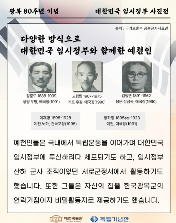 예천군 예천박물관은 광복 80주년을 맞아 8월 5일부터 31일까지 독립기념관 순회전 ‘대한민국 임시정부 사진전’을 개최하고 있다. 이번 전시는 일제강점기 독립운동의 구심점이었던 대한민국 임시정부의 활동과 광복의 여정을 조명하며, 임시정부와 뜻을 함께한 예천 출신 독립유공자 22명의 발자취를 집중적으로 소개한다. 1919년 임시정부 수립부터 1945년 광복에 이르기까지, 국내외에서 이어진 다양한 독립운동의 모습이 사진과 함께 전시되며, 관람객은 역사 속 치열했던 독립운동 현장을 생생하게 느낄 수 있다. 특히 예천에서 태어나 전국과 세계 각지에서 활약한 독립유공자들의 행적을 함께 담아, 지역민이 자랑스럽게 기억해야 할 항일투쟁의 역사를 되새길 수 있도록 했다. 예천은 일제강점기 수많은 독립운동가를 배출한 고장이다. 만주와 중국, 일본 등지로 건너가 임시정부와 군사조직을 지원하고, 국내에서 독립자금을 모집하며, 광복군에 입대해 무장투쟁을 전개한 인물들이 그 주역이었다. 권원하는 신흥무관학교를 졸업한 뒤 군정서의 밀명을 받고 귀국해 군자금 모집 활동에 나섰으며, 이병한은 동지들과 함께 지역 부호로부터 거액의 자금을 모아 상해 임시정부에 전달했다. 김병동과 김현동, 손영기, 장진우, 전병표, 한양이 등은 서로군정서를 지원하기 위해 결성된 ‘독립후원의용단’에 가입해 전국 각지에서 군자금 모집 활동을 전개했다. 신욱은 개인과 종중 재산을 처분해 수천 정보의 임야를 팔고 임시정부에 전달함으로써 독립운동을 뒷받침했다. 1940년 9월 창설된 한국광복군에 참여한 예천인들의 활약도 눈에 띈다. 권혁무, 박주대, 백문기, 오연근, 윤종록, 이종렬, 전병림, 조청래 등은 일제에 의해 강제 징집됐다가 탈출해 중국군에 합류했고, 이후 광복군에 편입되어 정보수집, 전방공작, 국내 진공작전 준비 등 다양한 임무를 수행했다. 그들의 용기 있는 선택과 치열한 활동은 광복군의 전력을 강화하는 데 크게 기여했다. 또한, 정훈모와 황하청은 임시정부 산하 서로군정서에서 무장 항일투쟁을 전개하며 국내외 전선을 누볐고, 고형림은 만주에서 광복군의 연락거점을 제공하는 한편 귀국 후 광복군 모집 활동을 이어갔다. 김정연과 이재영은 국내에서 항일운동을 전개하다 임시정부로 투신하려 했으나 체포되어 뜻을 이루지 못했지만, 그들의 결의와 의지는 독립운동사에 길이 남았다. 이처럼 예천 출신 독립유공자들의 항일투쟁은 무장투쟁, 자금 지원, 비밀연락 활동 등 다방면에서 이뤄졌으며, 이는 임시정부의 존립과 독립운동의 지속에 중요한 토대가 됐다. 김학동 군수는 “오늘의 대한민국이 있기까지, 조국 독립을 위해 몸과 마음을 바친 독립운동가들의 숭고한 정신과 희생을 잊지 말아야 한다”며, “광복 80주년을 맞아 이번 전시가 나라 사랑의 마음을 되새기고 후손들에게 올바른 역사 인식을 심어주는 계기가 되길 바란다”고 말했다. 예천박물관은 앞으로도 다양한 주제의 전시와 문화 프로그램을 통해 지역민과 관람객이 역사를 배우고, 문화유산을 향유할 수 있는 기회를 확대해 나갈 계획이다. 이번 전시는 오전 9시부터 오후 6시까지 무료로 관람할 수 있으며, 매주 월요일은 휴관한다.