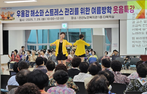구미시는 무더위로 지치기 쉬운 어르신들이 활기차고 건강한 여름방학을 보낼 수 있도록 선산노인복지관에서 특강을 운영했다.특강은 3주간의 여름방학 기간(7월 28일부터 8월 17일까지)에 진행됐으며, 웃음 특강과 영화 ‘장수상회’ 상영을 통해 어르신들의 삶에 활력을 불어넣고 문화생활을 지원했다.웃음 특강은 외부 강사를 초청해 웃음을 통한 스트레스 해소와 신체 활동량 증가를 돕고, 어르신 간 친밀감과 소통을 높이는 맞춤형 프로그램으로 진행됐다. 강사의 세심한 지도에 어르신들은 큰 호응을 보냈다.또한 문화생활을 즐길 수 있는 시간을 마련해 영화 ‘장수상회’를 상영, 약 100여 명의 어르신이 관람했다. 참석자들은 웃음과 감동을 나누며 정서적 안정과 소중한 추억을 함께했다.최창수 어르신복지과장은 “노년기 행복한 삶의 질 향상을 위해 노인복지 증진에 더욱 힘쓰겠다”고 했다.