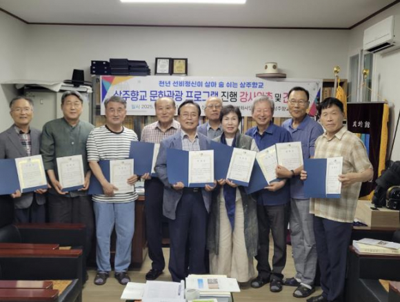 천년 역사의 대설위 상주향교에서는 8월 7일 오전 11시 상주향교 전교실에서 성균관유교문화활성화사업단 공모사업으로 선정된 향교·서원 문화관광 프로그램 운영 강사진에게 위촉장을 수여하고 간담회를 개최했다.위촉장은 상주향교 전교 명의로 본 프로그램 운영의 효율적 추진과 강사로서의 책임감과 인정감을 고취시키기 위하여 개별로 유인하여 수여했다.상주향교 문화관광 프로그램 운영의 강사진은 특강에 김명희 전교를 비롯하여 선비체험에 조성연 의전수석 장의, 조남진 장의가, 국궁 및 투호 체험에는 고명환 장의, 이창영 장의, 상주민요에 김범영 강사, 도남서원 체험에 이헌우 유사, 국학기공 체험에 이순자 강사, 활인심방 체험에 유영봉 강사, 경전성독 강사에 조재석 사회교육원장, 문화유산해설에 조희열 전 상주향토문화연구소장, 진행보조에 조수진 장의, 총괄 기획 및 청년유사에 곽희상 상주향교 사무국장이 역할을 맡게 됐다.본 사업은, 문화체육관광부 유교지원 국고보조사업의 일환으로 2025 성균관 유교문화활성화사업단의 공모사업이다. 상주향교는 6년째 문화관광 프로그램 운영단체로 선정됐다.주제는 ‘천년 선비정신이 숨쉬는 상주향교’이다. 숙박형(1박 2일)으로 총 4회(회당 30명)을 기준으로 운영하면서 상주향교, 도남서원, 경천대, 상주 동학교당, 성주봉 목재문화체험장, 상주 상산관 등의 방문을 통하여 전통 선비문화 체험과 예절의 습득 및 관광문화 상품 개발과 유교 브랜드의 가치를 창출하면서, 미래 농업혁신을 선도할 스마트팜 혁신밸리를 견학한다.한편, 김명희 전교는 “천년 역사의 대설위 상주향교에서 진행되는 성균관 유교문화사업의 문화관광 프로그램 사업은 무엇보다 상주의 역사와 문화를 알리는데 의미가 있다”며 “양반의 고장인 상주에서 전통예절과 문화관광이 어우러져 참된 선비상의 뿌리를 내리는 계기가 되기를 기대한다”고 했다.