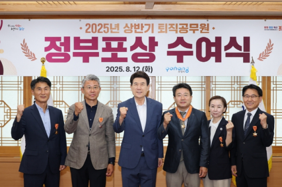 포항시는 12일 시청 대외협력실에서 ‘2025년 상반기 퇴직자에 대한 정부포상 수여식’을 열고, 장기간 시정 발전과 국가에 기여한 퇴직 공무원들의 공로를 기렸다. 퇴직자 정부포상은 공직에 몸담아 오면서 직무를 성실히 수행하며 공·사생활에 흠결이 없고, 포항시 및 국가 발전에 기여한 퇴직공무원에게 수여하는 명예로운 상이다. 공무원 퇴직자에 대한 정부포상은 ▲33년 이상 재직자에 대해서는 근정훈장 ▲30년 이상 33년 미만은 근정포장 ▲28년 이상 30년 미만은 대통령 표창 ▲25년 이상 28년 미만은 국무총리 표창 ▲10년 이상 25년 미만은 장관 표창이 수여된다. 이번 정부포상 수여식에는 30명이 수상했으며 ▲홍조근정훈장 장종용 ▲녹조근정훈장 예은희, 최명환, 박병준, 신구중, 이윤우, 최무형, 천목원, 김승태, 서숙희 ▲옥조근정훈장 강호근, 김숙희, 김옥희, 김진한, 김태록, 김향지, 류덕순, 故 이병열, 이형우, 진윤미 ▲근정포장 김현구, 배경민, 장화숙, 최종원 ▲대통령표창 이석문, 박향희, 이미애, 故 장성윤 ▲장관표창 이형근, 정의지 씨가 수상했다. 이강덕 포항시장은 “여러분이 보여주신 헌신과 책임감은 포항시 행정의 귀중한 자산이자 후배 공무원들의 본보기가 되고 있다”며 “오랜 세월 쌓아온 경험과 지혜가 앞으로도 지역 발전과 시민의 행복을 위해 이어지길 바란다”고 말했다.