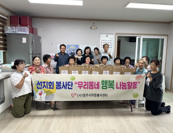 영주시 선지회봉사단(단장 임금화)은 지난 12일 문수면 월호2리 경로당을 방문해 정성껏 만든 보리빵과 간식을 어르신들에게 전달했다.부석사 신도들로 구성된 선지회봉사단은 당일 아침부터 회원들이 함께 보리빵을 직접 만들었으며, 문수면 새마을부녀회(회장 임준자)와 함께 경로당을 찾아 어르신들의 안부를 묻고 담소를 나누는 시간을 가졌다.임금화 단장은 “어르신들이 남은 여름을 건강하고 무탈하게 보내시길 바라는 마음으로 행사를 준비했다”며 “옛 추억이 담긴 보리빵과 간식을 드시며 즐거운 시간을 보내시는 모습을 보니 뿌듯하다”고 말했다.이석희 문수면장은 “무더운 날씨에도 어르신들이 행복한 하루를 보내실 수 있도록 나눔과 봉사에 앞장서 주신 선지회봉사단장님과 회원들께 감사드린다”며 “앞으로도 선지회가 더욱 발전하길 바란다”고 말했다.