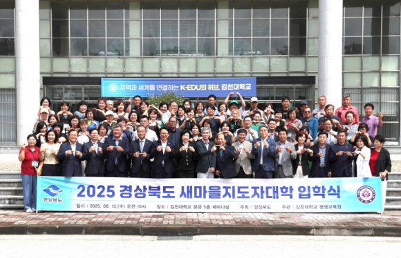 경상북도와 김천대학교는 13일 김천대학교 본관 5층 세미나실에서 2025 경상북도 새마을지도자대학 입학식을 개최했다.이번 입학식에는 교육생 70여 명을 포함, 이정률 경상북도 정무실장, 윤옥현 김천대학교 총장, 시군 새마을회장, 김천시 부시장, 도의원 등 내빈 80명이 참석해 새마을운동의 새로운 주역들을 응원했다.새마을지도자대학은 대한민국 경제발전의 원동력이 된 새마을운동 정신을 계승하고, 나눔・배려・봉사의 실천 덕목을 더한 제2새마을운동을 통해 국민 통합과 지속 가능한 발전을 이끄는 새마을 전문 교육기관이다.변화와 혁신의 시대에 발맞춰 지역사회를 이끌 정예 새마을지도자 양성을 목표로 2007년부터 경북도가 지역대학과 협력해 운영하고 있다.현재까지 2,626명의 수료생을 배출했으며, 새마을지도자 졸업생들은 도내 각지에서 지역사회 봉사활동과 새마을운동의 실천에 앞장서며 중심적인 역할을 해오고 있다.올해 입학생 70여 명은 13일부터 11월 19일까지 13주간 매주 수요일 김천대학교 평생교육원에서 총 14회차, 100시간의 교육과정을 이수하게 된다.교육 내용은 ▲새마을운동의 역사와 철학 ▲21세기 새마을운동의 방향성 ▲지도자 리더십 ▲외국어와 드론 실습 ▲현장 체험과 분임 토론 등 다양하고 실천 중심적인 프로그램으로 구성됐다.이번 교육은 특히 4차 산업 시대에 대응할 수 있도록 생성형 인공지능(AI)활용 강의와 드론 실습 과정이 포함돼 있어, 미래형 새마을지도자 양성에 주안점을 두었다.드론 실습 과정은 농지를 효율적으로 관리하고 작물 상태를 실시간으로 관찰해 문제를 조기에 발견할 수 있도록 도와주면서, 농작업에 인력과 시간을 절약할 수 있게 해 교육 만족도가 높다.어학 과정(베트남어)도 다문화 가정과 농번기 외국인 농업 계절근로자의 언어 소통을 위해 기본적인 회화를 배울 수 있어 배워 농작업과 일상생활에서 소통을 돕고 있다.이정률 경북도 정무실장은 “새마을지도자 대학은 지역사회에 봉사할 참된 새마을 리더와 지역 일꾼을 양성하는 교육으로, 여러분들이 지역사회에 필요한 변화와 혁신의 주역으로 우뚝 서길 바란다.”라고 격려했다.