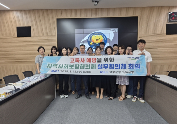 고령군은 8. 13. 고령군청 2층 가야금방에서 고독사 예방을 위한 지역사회보장협의체 실무협의체 회의를 개최했다. 고독사 예방 실무협의체는 민·관 협력을 통해 고독사 위험이 있는 복지사각지대 및 필요한 사업을 발굴하고, 추진 중인 고독사 예방 관련 사업을 검토하고자 구성됐다. 본 회의에서 실무협의체 위원들은 2025년 상반기 고독사 예방 사업 추진 현황, 2026년 고독사 예방사업 추진방향, 행복기동대·명예사회복지공무원 활성화 방안 등 다양한 안건에 대해서 논의했다.고령군에서는 고독사 예방을 위한 안부살핌 우편서비스 사업, 1인가구 정서지원을 위한 푸드아트테라피 교실 운영, 생활환경 및 생활개선 지원 사업 등 사회적 고립가구 지원을 위한 많은 사업을 추진하고 있다.앞으로도 고령군은 고독사 예방 실무협의체를 중심으로 지역 내 복지 사각지대를 해소하고 촘촘한 복지안전망을 구축하기 위한 민·관 협력사업을 다양한 방면으로 추진할 계획이다.