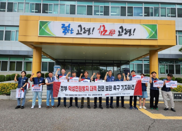전국공무원노동조합 경북지역본부(본부장 류동열)는 8월 13일 오전 11시 고령군청 본관 앞에서 정부를 향해 “현장과 동떨어진 악성민원 종합대책의 전면 보완”을 촉구하는 기자회견을 열었다.지난해 정부가 `악성 민원 방지 및 민원 공무원 보호 강화 대책`을 수립하여 시행한 지 1년이 지났음에도 현장 체감도는 근본적인 문제를 해결하기에는 역부족이라 호소하며 실효성 있는 대책 마련을 촉구했다.지난해 5월 정부는 경기 김포시의 30대 공무원이 도로 파임(포트홀) 보수 공사로 생긴 차량 정체로 항의 민원에 시달리다 사망하자 두 달 만에 `악성 민원 방지 및 민원 공무원 보호 강화를 위한 범정부 종합대책`을 수립 시행하면서 `악성 민원 개념 정립 및 유형별 대응방안 마련, 민원 신청 수단별 차단 장치 강구, 피해 공무원 상담 등` 대책 마련으로 시행됐다.정부는 3월 “악성 민원 대응 공무원 보호를 위한 현장 조치 차질 없이 안착”이라는 보도자료(2025.3.24.)를 통해 제도가 현장에 안착하고 있다고 밝혔지만 전국공무원노동조합이 136개 기관을 대상으로 올해 6월 실시한 `정부 악성민원종합대책 실태조사` 결과, 현장은 여전히 정부의 발표와 큰 괴리가 있음을 보여주었다.실태조사 결과, 악성 민원 대처 전담 부서는 신설 없이 기존 부서가 업무를 떠안는 형태가 대부분이었고, 전담 인력조차 없는 기관이 절반을 훌쩍 넘었다(지자체 58%, 교육청 71%), 청원경찰 등 정규 안전요원 배치 부분은 지자체 본청에는 대부분(86%) 배치된 반면 읍면동 행정복지센터의 안전요원 배치율은 31%에 불과했다. 이 날 기자회견에 참석한 지부장들은 악성 민원인 대처 전담 부서 신설과 안전요원 인력 배치 의무화를 통한 실질적 대책을 정부에 요구하며, 현장의 현실을 외면한 정부 대책은 ‘탁상공론’에 그친다고 했다. 류동열 본부장은 “전국 시군구 지방공무원들이 평상시 추진하는 현안업무 만으로도 허덕이는데 특히 올해는 대형 산불과 폭염, 호우에 따른 재난 대비·복구 업무, 선거 업무, 민생회복쿠폰 지급 업무도 겹친 상황에서 악성 민원까지 대응해야 하는 일선 공무원들의 노동 강도는 가히 살인적이라 할 만하다”고 전했다. 또한 정부의 저출생 극복을 위한 육아휴직, 유연근무 등 복지정책의 확대로 정원은 그대로지만 휴직자의 다발생으로 현장은 더욱 힘들어하고 있다며 이 모든 문제의 근본적인 해결은 발로 뛰는 행정이 되게끔 정원을 대폭 증원함으로 민생 현장을 꼼꼼히 살펴 민원 발생의 소지를 애초에 감소시키는 것이라고 강조했다.