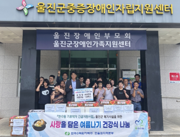 한국수력원자력(주) 한울원자력본부는 8월 14일 울진군 내 12개 복지시설에 삼계탕 400인분과 여름 제철과일 139박스를 전달했다. 이번 나눔은 ‘한수원 기후약자 긴급지원사업’의 일환으로, 지난 7월에 시행한 냉방비 지원에 이어 무더위에 취약한 주민들의 건강을 지키기 위해 마련됐다. 지원 물품은 울진바지게시장 등 전통시장에서 구매해 지역 상권에도 활력을 더했다. 전달식에 참석한 울진군중증장애인자립지원센터 안순옥 센터장은 “매년 잊지 않고 따뜻한 마음을 전해주셔서 무더운 날씨에도 건강을 챙길 수 있는 큰 힘이 됐다”라고 말했고, 이에 한울본부 강태윤 대외협력처장은 “폭염으로 어려움을 겪는 이웃들에게 작게나마 도움이 될 수 있어 기쁘며, 앞으로도 좋은 나눔이 무엇인지에 대해 세심하게 고민하고 실천해 나가겠다”라고 화답했다.