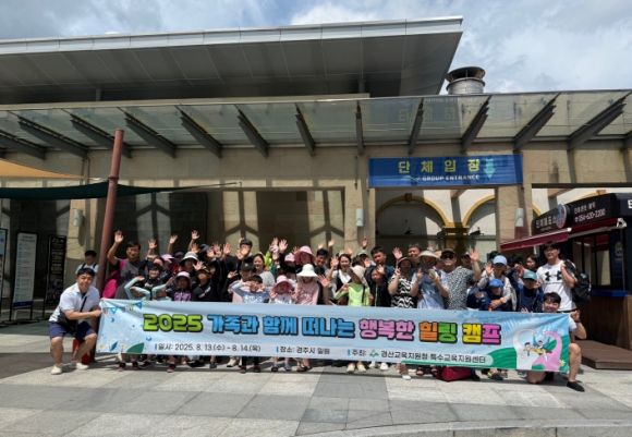 경산교육지원청 특수교육지원센터는 8월 13일 수요일부터 14일 목요일까지 1박 2일간 경주시 일원에서 관내 초, 중, 고, 특수학교 특수교육대상학생 20가족 74여 명을 대상으로 2025 특수교육대상학생 가족지원 캠프를 운영했다. 가족지원 캠프는 특수교육대상자 가족의 장애에 대한 이해와 비장애 형제․자매가 같이 참여하여 가족 화합의 시간을 갖고 건강한 가족관계 형성 지원 등을 위해 기획됐으며 아울러 이번 가족지원 캠프에서는 장애를 가진 가족 모두의 힐링과 치유를 위해 다양한 프로그램을 진행하여 모처럼의 소중한 시간과 즐거운 한때를 제공했다. 8월 13일 첫날에는 경주 강동 워터파크(구. 블루원)에서 가족과 함께 물놀이를 하고, 저녁에는 더케이 호텔에서 경산교육지원청의 각종 사업 안내 및 소통.공감의 시간을 마련했다. 또한 여름밤의 야경 명소 동궁과 월지의 야경 투어를 실시했다. 8월 14일 이튿날에는 바니베어뮤지엄을 방문하여 관람 및 체험 활동이 있었으며 국립경주박물관 견학을 끝으로 일정을 마무리했다. 박혜옥(교육지원과장) 센터장은 ????가정이 건강해야 사회도 건강하고 우리 아이들도 바르게 성장할 수 있는 밑거름이 된다”면서 “경산교육지원청은 건강한 가족이 유지될 수 있도록 다양한 프로그램을 앞으로도 지속적으로 제공할 것이다”고 말했다.