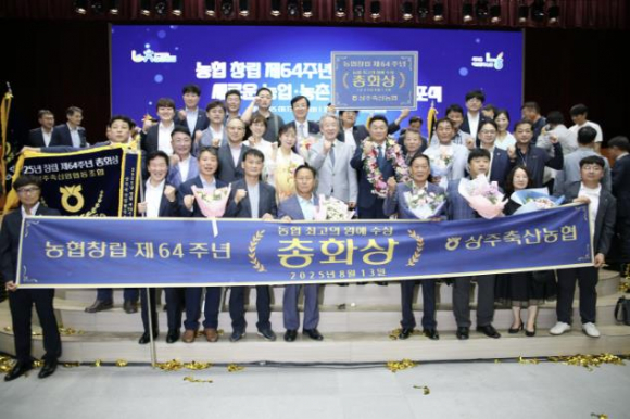 상주시 축산농협은 8월 13일 농협중앙회 본관에서 열린 창립 제64주년 기념식에서 농협 최고 영예의 상인 “총화상”을 수상했다.총화상은 농협중앙회에서 중앙회 및 계열사, 전국 농·축협을 대상으로 임직원 인화단결, 친절봉사, 복무기강 확립, 대외활동 추진, 직무능력, 업적추진 등을 총괄 평가하여 수여하는 농협 최고 영예의 상이다.상주축산농협은 축산농가 실익사업과 복지증진을 위해 교육지원사업을 확대해 나가고 있으며, 축산업의 사회적 책임 이행을 통한 지속 가능한 축산업을 만들어 가고자 지역사회와 상생·나눔축산을 실천함으로써 타 농축협의 귀감이 되고 있다.김용준 조합장은 “총화상 수상을 계기로 앞으로도 화합과 소통을 통하여 축산인의 소득증대와 복지 향상에 힘쓰고, 지역 사회와의 상생으로 믿고 신뢰할 수 있는 최고의 축협으로 거듭나기 위하여 최선의 노력을 다하겠다“라고 밝혔다.