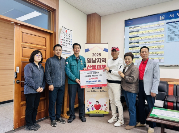 ㈜영농조합법인 오봉은 2025년 4월 28일 서면행정복지센터를 방문하여 영남지역 대형 산불 피해 주민들을 위해 성금 200만원을 기탁했다.오봉은 서면 지역 화장장 유치에 따라 2018년 설립된 단체로, 서면 7개 마을 주민들이 조합원으로 구성되어 있다. 이들은 지속적인 나눔 활동을 통해 지역사회와 상생을 위한 노력에 힘쓰고 있다.이상일 대표이사는 “산불로 삶의 터전을 잃고 힘든 상황에 놓인 피해 주민들의 빠른 회복과 피해 지역 복구를 기원하며, 작은 정성이지만 도움이 되기를 바란다”고 전했다.김동수 서면장은 “기탁해주신 성금은 산불 피해 지역 주민들에게 잘 전달될 수 있도록 하겠다”며, 기부에 대한 감사의 마음을 전했다.
