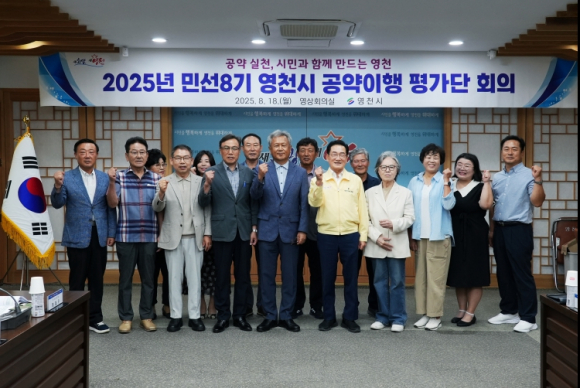 영천시는 18일 시청 영상회의실에서 ‘2025년 민선8기 공약이행 평가단 회의’를 개최했다고 밝혔다.이날 회의에는 공약이행 평가단 위원 16명이 참석해, 민선8기 4년차를 맞아 공약사업 추진 현황을 점검하고, 실효성 제고를 위한 발전방안을 논의했다.민선8기 공약이행 평가단은 2022년 9월 공개모집을 통해 위촉된 시민 대표단으로, 공약사업의 계획부터 실행·변경에 이르는 전 과정을 주기적으로 점검하고 개선 의견을 제시하며 시정과 시민을 잇는 가교 역할을 하고 있다.이번 회의에서 시는 4대 분야 34개 공약사업의 추진 현황을 보고했다. 현재까지 달성률은 72.7%로, 완료 24건, 정상추진 9건이며, 주요 사업들이 계획대로 속도감 있게 진행되고 있다.올해는 8월 1일 국민체육센터가 정식 개관했으며, 연말까지 ▲영천하이테크파크지구 ▲화물자동차 공영차고지 ▲신성일기념관 ▲마늘융복합센터 ▲금호대창하이패스IC 개통 등 지역 발전의 핵심 기반이 될 대형 프로젝트들이 잇따라 마무리될 예정이다.특히 이날 회의에서는 행정 여건 변화에 따른 사업 명칭·내용 조정, 예산 변경 등 총 5건의 변경 사항을 심의했으며, 그 결과와 변경 내역은 시 홈페이지를 통해 시민에게 투명하게 공개할 예정이다.이번 공약이행 평가단 회의는 시정 성과를 공유하는 한편, 시민 대표들의 의견이 활발히 오가는 열띤 분위기 속에서 진행됐으며, 위원들은 현장의 목소리를 토대로 다양한 아이디어를 제시했다.김상호 공약이행 평가단 위원장은 “민선8기 공약사업이 72% 이상 이행되고 있다는 소식에 시민으로서 매우 든든하다”며, “앞으로도 객관적이고 공정한 평가를 통해 공약이 시민 삶의 질 향상으로 이어지도록 최선을 다하겠다”고 밝혔다.최기문 시장은 “위원님들의 다양한 고견을 시정에 적극 반영해 공약사업이 차질 없이 추진되도록 하겠다”며 “시민과의 소중한 약속인 공약사업을 끝까지 성실히 이행해, 시민이 체감하는 변화를 만들어 가겠다”고 말했다.