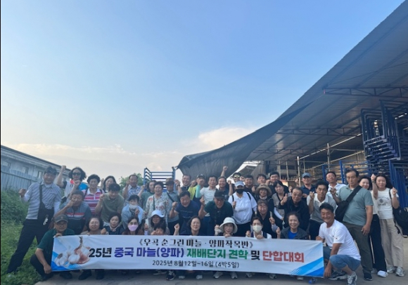 우곡순그린마늘양파작목반(회장 최병열, 사무장 김정훈)은 지난 8. 12. 부터 8. 16.까지 4박 5일간 일정으로 중국 하남성과 하북성 일대 마늘·양파 재배단지 견학 및 단합대회를 가졌다. 이번 견학은 국내외 농산물 유통 동향과 생산기술을 공유하고 새로운 판로 확대 방안을 모색하기 위해 마련됐다. 작목반 회원들은 현지 마늘·양파 주산지, 작업 현장, 농산물 유통 시장 등을 직접 둘러보며 중국의 농업 정책과 농산물 유통 구조를 체험했다. 작목반 관계자들은 특히 기후에 따른 마늘·양파 재배 방식의 차이, 대규모 계약 재배와 물류 유통 체계 등은 향후 작목반 운영과 경쟁력 강화에 있어 큰 도움이 될 것이라 평가하고 있다. 우곡순그린마늘양파작목반 최병열 회장은 “이번 견학 및 단합대회를 통해 세계 농산물 시장의 변화와 흐름을 한눈으로 확인할 수 있었다.”라며 “앞으로도 우리 작목반이 단순한 생산에 머무르지 않고 가공 및 유통 그리고 수출까지 확장할 수 있는 기반을 다져 고령을 대표하는 작목반이 되는 것이 목표다.”라고 밝혔다. 한편 우곡순그린마늘양파작목반은 지역 농업의 경쟁력 제고와 농가 소득 향상을 위해 꾸준한 연구와 교류 활동을 이어가고 있는 고령 지역 내 대표적인 마늘·양파 작목반이다.