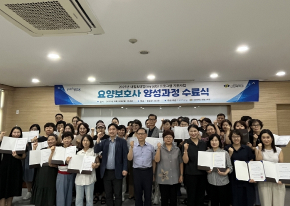포항시는 지난 18일 선린대학교 믿음관 세미나실에서 ‘2025년 내일(My Job)·내일 지원사업’의 하나로 추진된 요양보호사 양성과정 수료식을 개최했다. 이번 과정은 지난 7월 7일부터 8월 18일까지 운영됐으며, 요양보호사 자격 취득을 위한 이론과 실기 교육을 마친 37명이 수료증을 받았다. ‘요양보호사 양성과정’은 경력단절여성과 일반 성인의 직업 역량을 높이고 재취업을 지원하기 위해 포항시와 선린대학교가 함께 마련한 평생교육 프로그램이다. 포항시는 지난 2014년부터 이 과정을 운영하며 요양보호사 양성에 힘써왔으며 초고령사회에 대응하기 위해 앞으로도 전문 인재 발굴과 육성에 적극 나설 계획이다. 조현미 평생학습원장은 “요양보호사는 지역사회의 든든한 버팀목이자 가족 돌봄의 희망”이라며 “앞으로도 시민의 삶의 질 향상과 지역 발전을 위해 큰 역할을 해주길 기대한다”고 말했다.