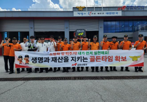 김천소방서는 20일 오후 2시에 2025년 을지연습ž민방위의 날과 연계한 전국 소방차 길 터주기 훈련을 진행했다. 이날 훈련은 소방ž경찰 합동으로 전통시장 등 정체구간 6km구간을 이동하는 형태로 진행됐다.재난 현장 골든타임 확보를 목적으로 추진되는 이번 훈련은 각종 재난 발생 시 소방차의 신속한 출동에 필요한 출동로 확보와 시민들의 공감 의식을 높이기 위해 마련됐다.소방차 길 터주기 요령은 ▶(편도 1차선)우측 가장자리 양보 운전 또는 일시 정지 ▶(편도 2차선)일반차량은 2차선으로 양보 운전 ▶(교차로)도로 오른쪽 가장자리 일시 정지 ▶(횡단보도)횡단보도 앞 잠시 멈춤 등이다.김천소방서장은 “소방차의 골든타임 내 재난 현장 도착을 위해 마련된 훈련인 만큼 생활 속 자발적 긴급차량 길 터주기에 많은 관심을 가져주길 부탁드린다”고 말했다.