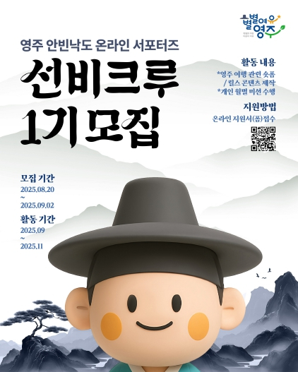 영주문화관광재단은 안빈낙도 지역 관광 활성화를 위해 8월 20일부터 9월 2일까지 온라인 서포터즈 ‘선비크루’ 1기를 모집한다고 밝혔다.올해 처음 선보이는 ‘선비크루’는 영주시 관광 특화 브랜드 ‘별별여유 영주’의 매력을 전국에 알리고, MZ세대를 중심으로 한 관광객 유치를 목표로 운영된다.모집 인원은 총 12명이며, 대상은 만 20세 이상 SNS 크리에이터다. 모집 기간은 8월 20일부터 9월 2일까지로, 영주문화관광재단 누리집에서 신청할 수 있다. 자세한 사항은 영주 안빈낙도 인스타그램 또는 이메일로 문의 가능하다.서포터즈 활동 기간은 9월부터 11월까지 약 3개월이며, 주요 활동은 △매월 주어진 미션에 따른 영주 여행 취재 △여행 콘텐츠·릴스·쇼츠 영상 제작 △선비문화테마파크(선비세상·선비촌·한국선비문화수련원) 행사 참여 △개인 SNS를 통한 영주 관광 홍보 등이다.모집 기간에는 ‘선비크루 하면 생각나는 내 친구!’라는 온라인 이벤트도 함께 진행된다. 영주 안빈낙도 인스타그램을 팔로우한 뒤 댓글에 친구를 태그하면 참여가 완료되며, 태그된 친구가 대댓글을 달면 당첨 확률이 높아진다. 당첨자는 9월 둘째 주 발표되며, 경품으로 영주사랑상품권이 제공된다.김원택 영주문화관광재단 대표이사는 “이번 서포터즈 활동을 통해 젊은 세대의 시각에서 영주의 새로운 매력을 발굴하고 소셜미디어를 통한 효과적인 관광 홍보가 이뤄지기를 기대한다”며 “선비정신과 현대적 감각을 담은 콘텐츠로 전국 관광객의 발길을 영주로 이끌겠다”고 밝혔다.