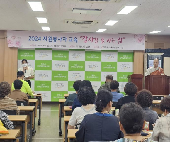 대한불교조계종사회복지재단에서 위탁 운영하는 안동시장애인종합복지관은 오는 8월 21일 14시부터 복지관 2층 강당에서 자원봉사자를 대상으로 ‘2025년 자원봉사자 교육’을 실시한다.이번 교육은 “웃음으로 공감하고 소통하자”를 주제로 경운대학교 윤복만 교수의 특강이 진행될 예정이다. 명사로 초청된 윤복만 교수는 웃음의 미학, 신바람 경영 등 20여 권의 저서를 출간했고, KBS 아침마당 등 다수의 TV 프로그램에 출연했으며. 2천여 회가 넘는 강의를 진행하며 웃음을 전도하고 있다.자원봉사자교육은 현재 복지관 내 급식 지원을 비롯해 다양한 영역에서 봉사활동을 하고 있는 자원봉사자들을 대상으로 자원봉사활동에서 오는 스트레스를 해소 시키고 자원봉사활동에 대한 동기를 강화하기 위하여 연 1회의 전문교육을 실시하고 있으며, 자원봉사자의 욕구를 반영하여 다양한 주제의 강의로 이루어지고 있다.복지관 관계자는 “앞으로도 다양한 주제의 교육을 통하여 자원봉사활동에서 오는 스트레스를 해소 시키고, 자원봉사활동에 대한 동기를 강화할 수 있도록 노력하겠다.”고 했으며 “봉사활동에 자긍심을 가지고 불편함이 없도록 항상 자원봉사자들의 말씀에 귀 기울이며 지원을 아끼지 않겠다.”고 전했다.