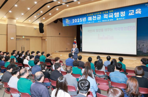 예천군은 29일 군청 대강당에서 공직자들을 대상으로 ‘2025년 예천군 적극행정 교육’을 실시했다. 이날 교육은 적극행정 공직문화 조성을 통한 군민 중심 행정 실천을 위해 공직자의 적극행정 업무 추진 역량을 강화하고자 마련됐다. 강의는 인사혁신처 적극행정 전담 강사로 활동 중인 김성훈 강사가 진행했으며 ‘국민의 일상을 바꾸는 적극행정 5G’라는 주제로 적극행정 사례를 통해 적극행정의 필요성 및 제도 등을 알기 쉽게 소개했다. 또한 적극행정의 창의성을 함양하기 위한 학습으로 새로운 사고를 할 수 있는 아이디어를 제시했다. 김학동 군수는 “적극행정은 군민 삶의 질을 높이는 진정한 행정의 가치이다”며, “이번 교육을 계기로 적극행정 문화를 정착시켜 군민 중심의 행정을 실천해주기 바란다”고 직원들을 독려했다. 한편, 예천군은 적극행정 문화 정착 및 확산을 위해 적극행정 마일리지 제도 운영 및 적극행정 우수공무원 선발 등 다양한 시책을 추진하고 있다.
