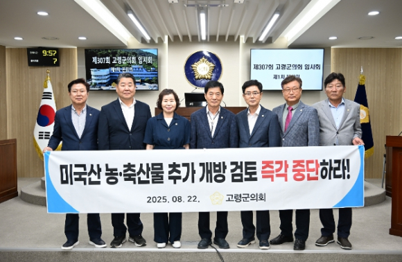 고령군의회는 8월 22일 금요일 제307회 임시회 제1차 본회의에서 `미국산 농·축산물 추가 개방 검토 중단 촉구 성명서`를 만장일치로 채택했다.이번 성명서는 최근 한·미 간 통상 협상 과정에서 농축산물의 추가 개방 가능성이 거론되고 있는 상황에서, 농업을 희생양으로 삼는 정부의 어떠한 검토와 시도에도 결사 반대한다는 의회의 강력한 입장을 담고 있다.고령군의회는 성명서를 통해 “미국산 농·축산물 수입 확대가 현실화될 경우 국내 농산물은 가격 경쟁력을 잃고 고사 위기에 직면할 수밖에 없다”며 깊은 우려를 표명했다. 또한 8월 25일 예정된 한·미 정상회담을 앞두고 농민들의 불안감이 커지고 있음을 강조했다.성명서에서 의회는 정부에 대해 다음과 같이 촉구했다.하나, 정부는 추가적인 농·축산물 수입 검토를 즉각 중단하라.하나, 어떠한 농·축산물도 통상협상의 대상이 될 수 없음을 강력히 선언하라.하나, 국익을 핑계로 농민을 통상협상의 희생양으로 삼지 않겠다는 명확한 입장을 표명하라.고령군의회는 “농업은 단순한 산업이 아니라 국가의 근간이자 국민의 생존권과 직결된 영역”이라며 “앞으로도 농민의 권익 보호와 지속 가능한 농업 발전을 위해 군민과 함께 끝까지 대응해 나가겠다”고 밝혔다.